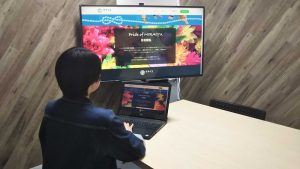 例えば、企業のHPなどを大画面に映して企業をご説明したり。