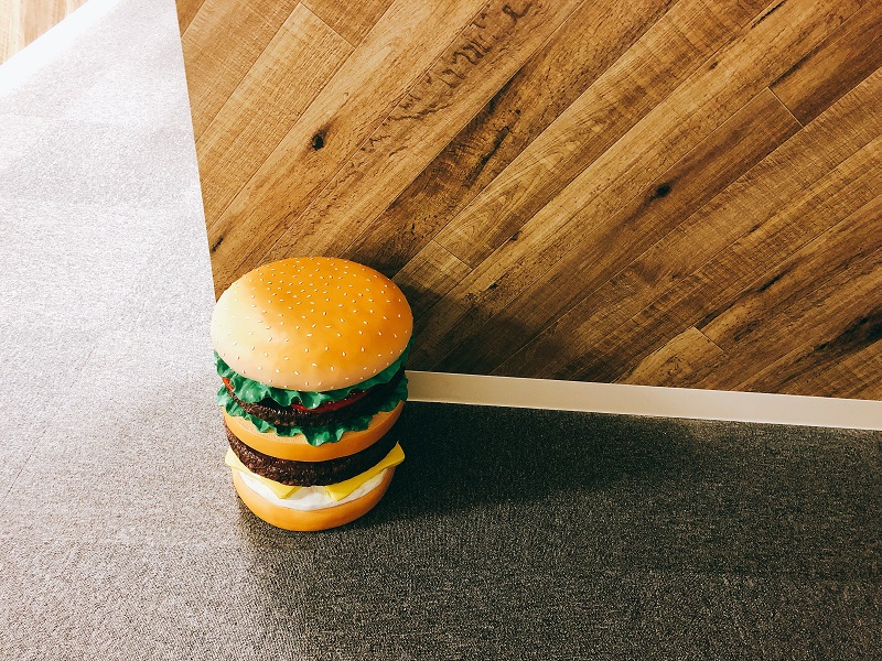 こちらは大きなハンバーガーが置いてあって、美味しそうです( ゜ρ゜)?