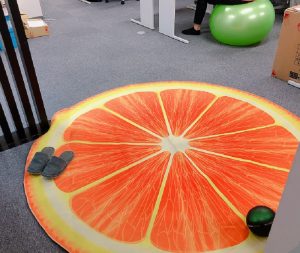奥へ進むと、オレンジのマットが。